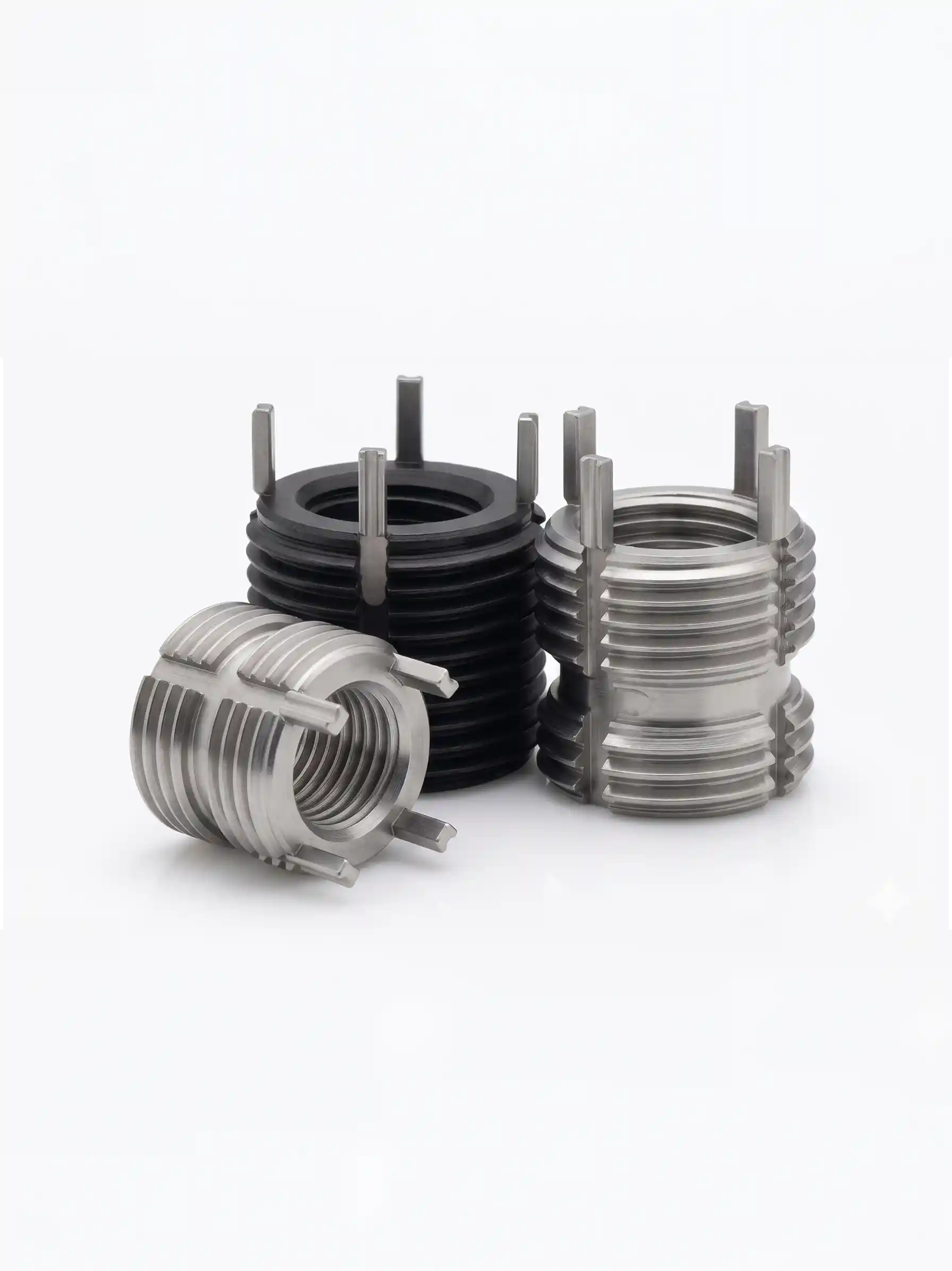 Les inserts à clavettes, disponibles en acier inoxydable ou en acier trempé zingué, sont des inserts métalliques monoblocs dotés de clavettes de verrouillage pré-assemblées. Ils permettent de créer un taraudage extrêmement robuste ou de réparer des filetages endommagés dans les alliages légers, l'acier ou la fonte.